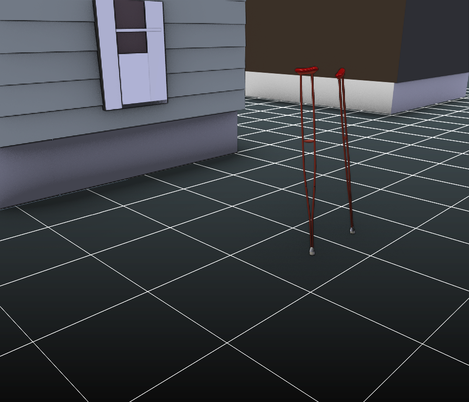 The scene was then set to real-world scale using the crutches height of 72” as reference (fig 12 ).
