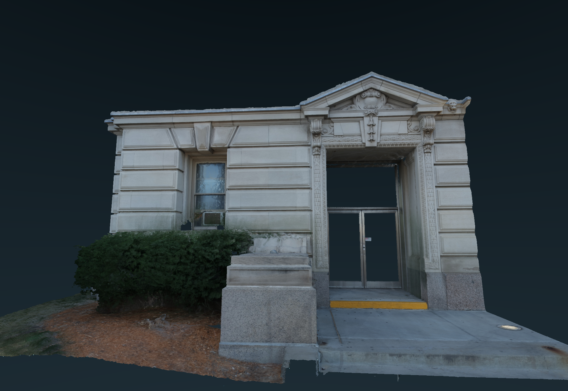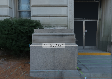 Fig 8. Final 3D model of the Polk County Courthouse’s south entrance, right-view. Notice the 2 m measurestick laying on the ground. Click on image to view larger.