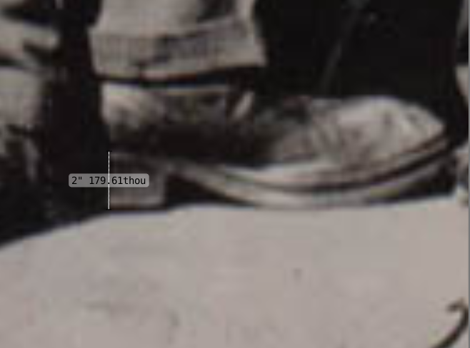 Note that all the heights listed in the photo above (fig.12) is their respective heights with shoes on. The heel of Coynes shoes is seen rather clearly in the photograph and when measuring the heel, using the ruler and protractor tool, it turns out to be 2.179” (5,5 cm). Extracting this figure from the total height of 7’11.5” (242,6 cm) we arrive at a height of 7’9.3” (237, 0 cm) barefeet.